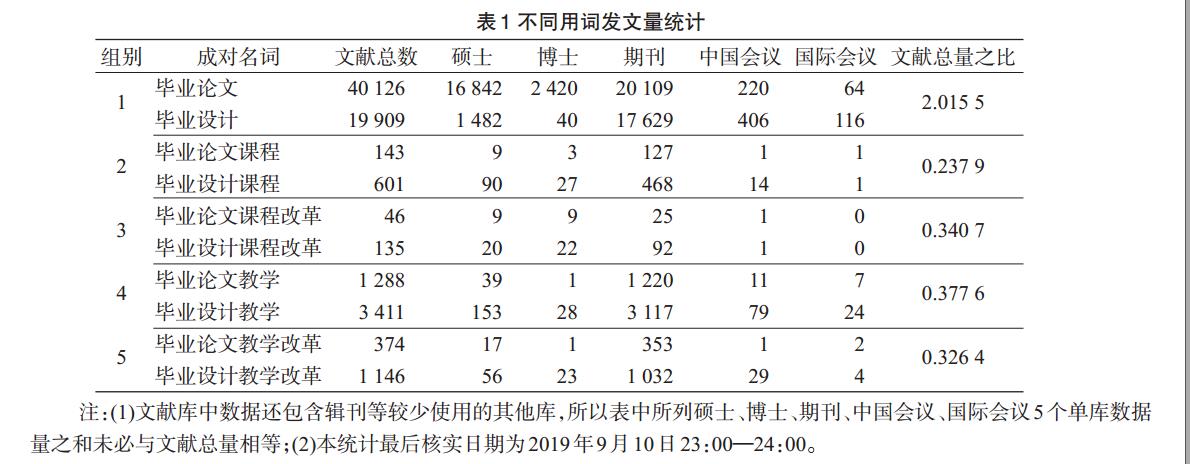 果如表 1。第 1 组名词“毕业论文”“毕业设计”之