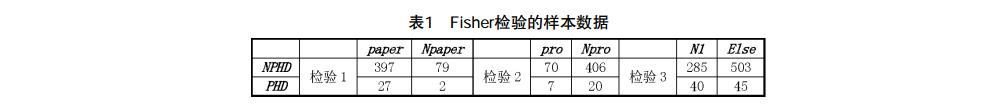 业型硕士研究生中占比更大。三次Fisher检验的P值分